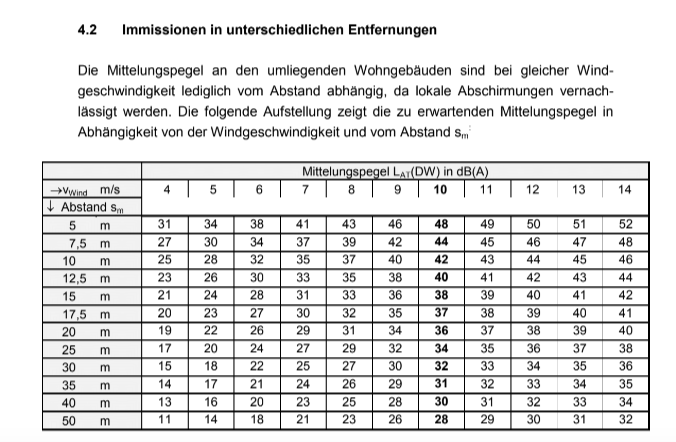 Der Betreiber überwacht kontinuierlich die Entwicklung der Windgeschwindigkeit und startet den Generator neu, wenn der Betrieb wieder möglich ist. Die genauen Schallwerte für Entfernungen und Windgeschwindigkeiten können Sie der in den Bildern gezeigten Tabelle des TÜV Nord entnehmen. Für den Einsatz in sensiblen Umgebungen – zum Beispiel in Büros, allen Wohngebieten – lässt sich SkyWind NG auf einen niedrigen und präzisen Maximaltonpegel für Komfortklang einstellen In Kombination mit dem Schallgutachten des TÜV Nord für SkyWind NG ist es möglich, die Einhaltung der geforderten Schallschutzwerte auch bei baulichen Auflagen, beispielsweise bei der Installation im Naturschutzgebiet, zu gewährleisten und zu prüfen.